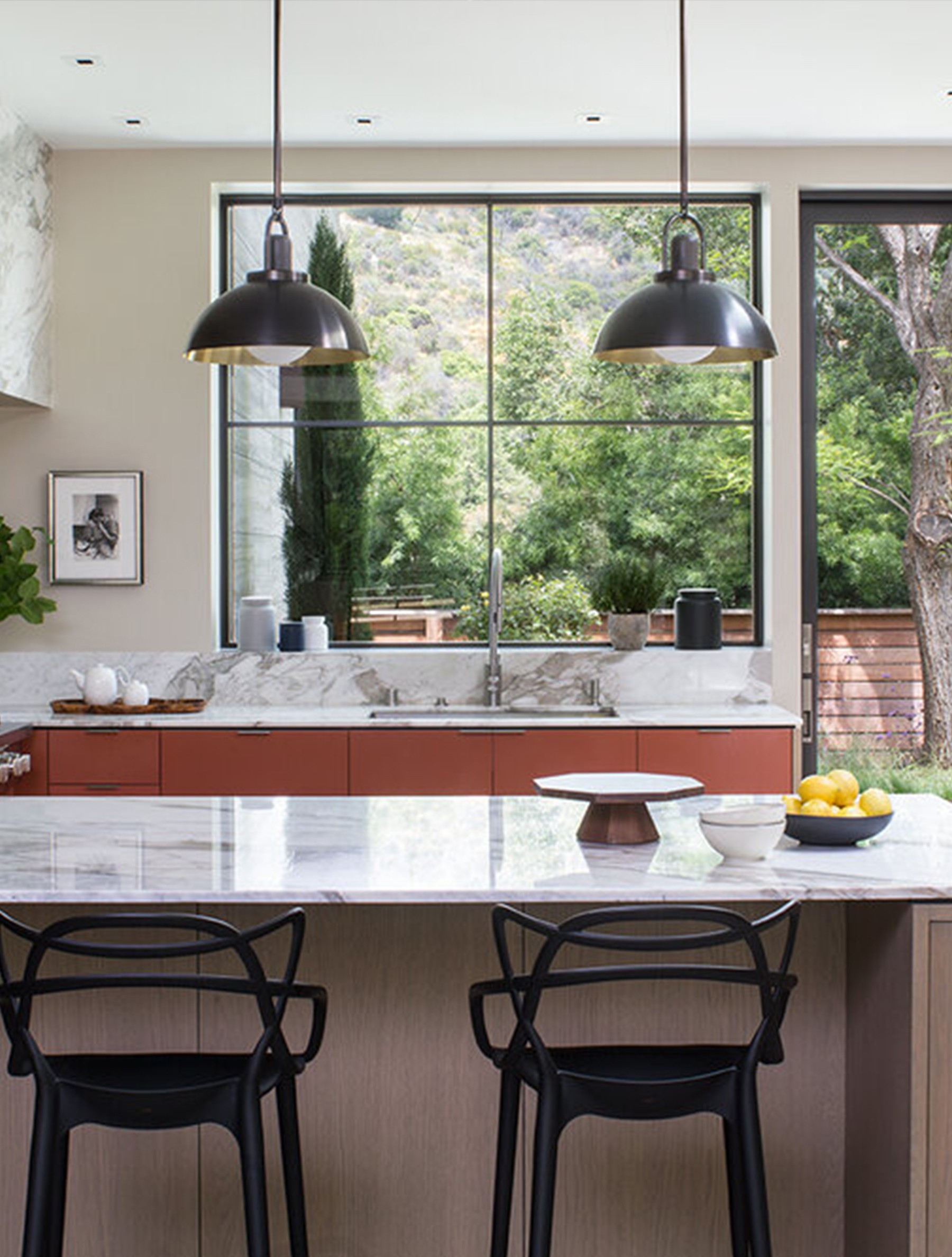 Arc 14" shown in Blackened Brass, Black Walnut, Opal Globe. Mandeville Canyon Project, Perfitt Richards Design. Photography by Meghan Beierle-O'Brien.