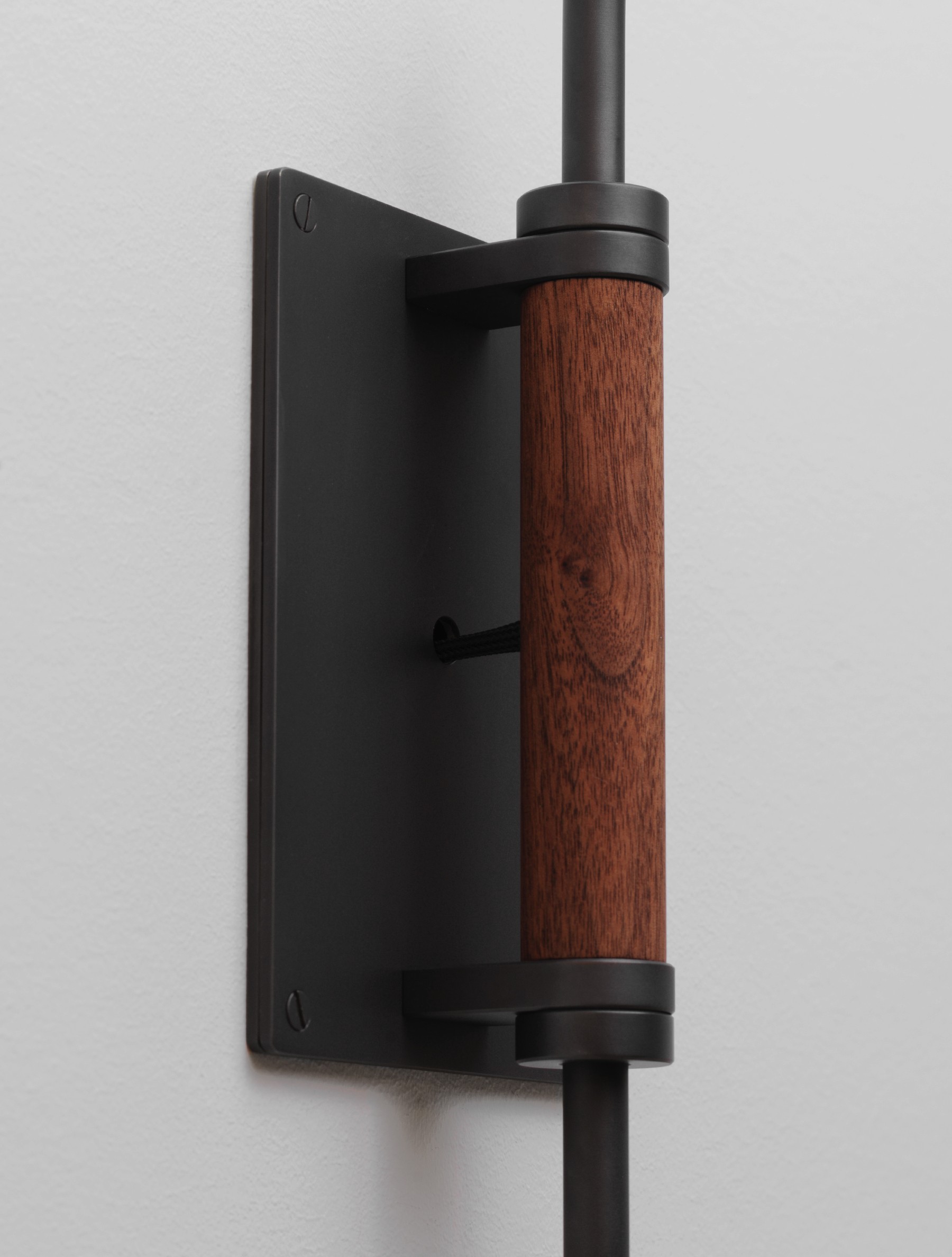 Arc Wall Lamp 33" detail shown in Flat Black, and Black Walnut