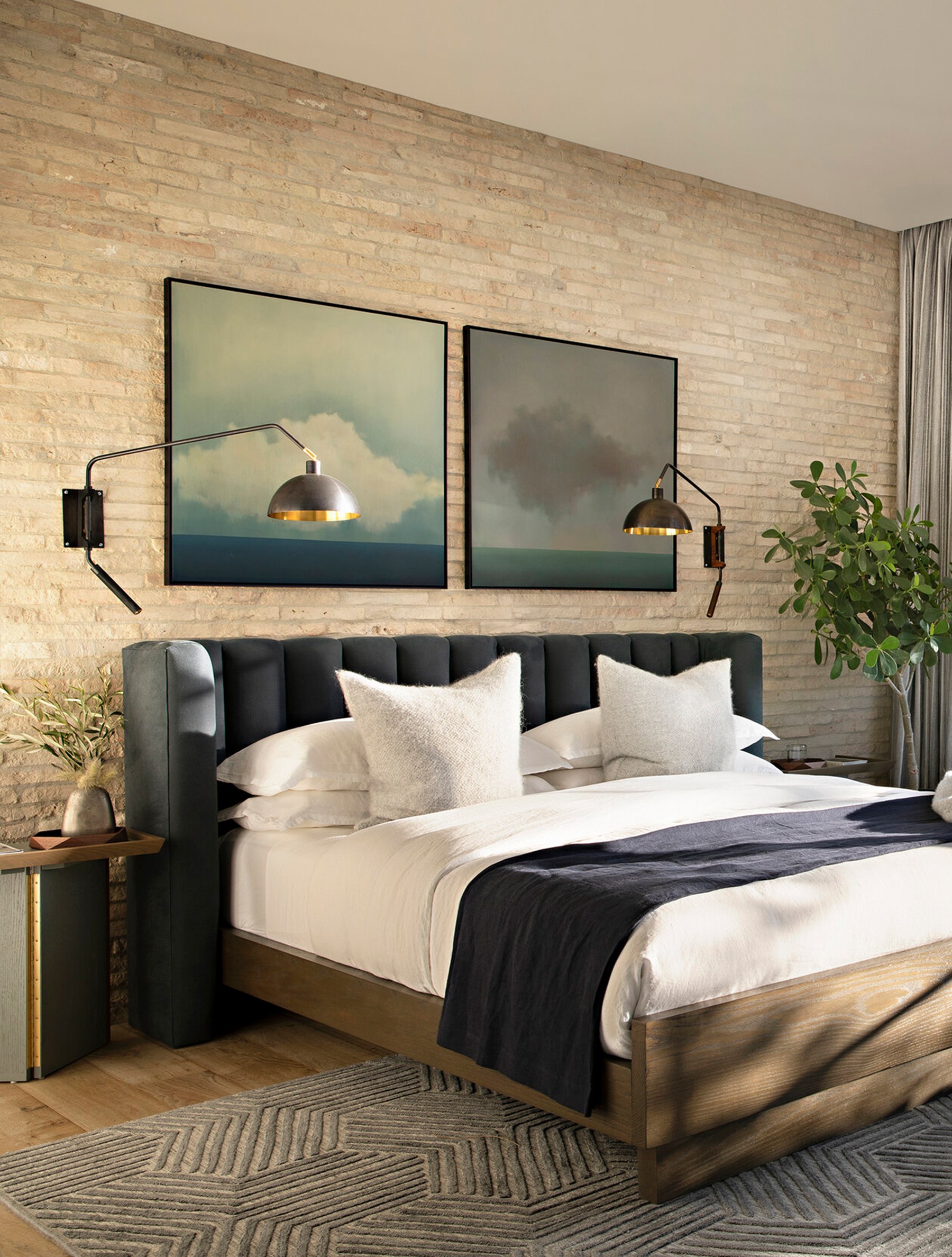 Arc Wall Lamp 33" shown in Blackened Brass, and Black Walnut. Harbor View Hills South II. Architecture by Eric Olsen Design. Photography by Karyn Millet Shea