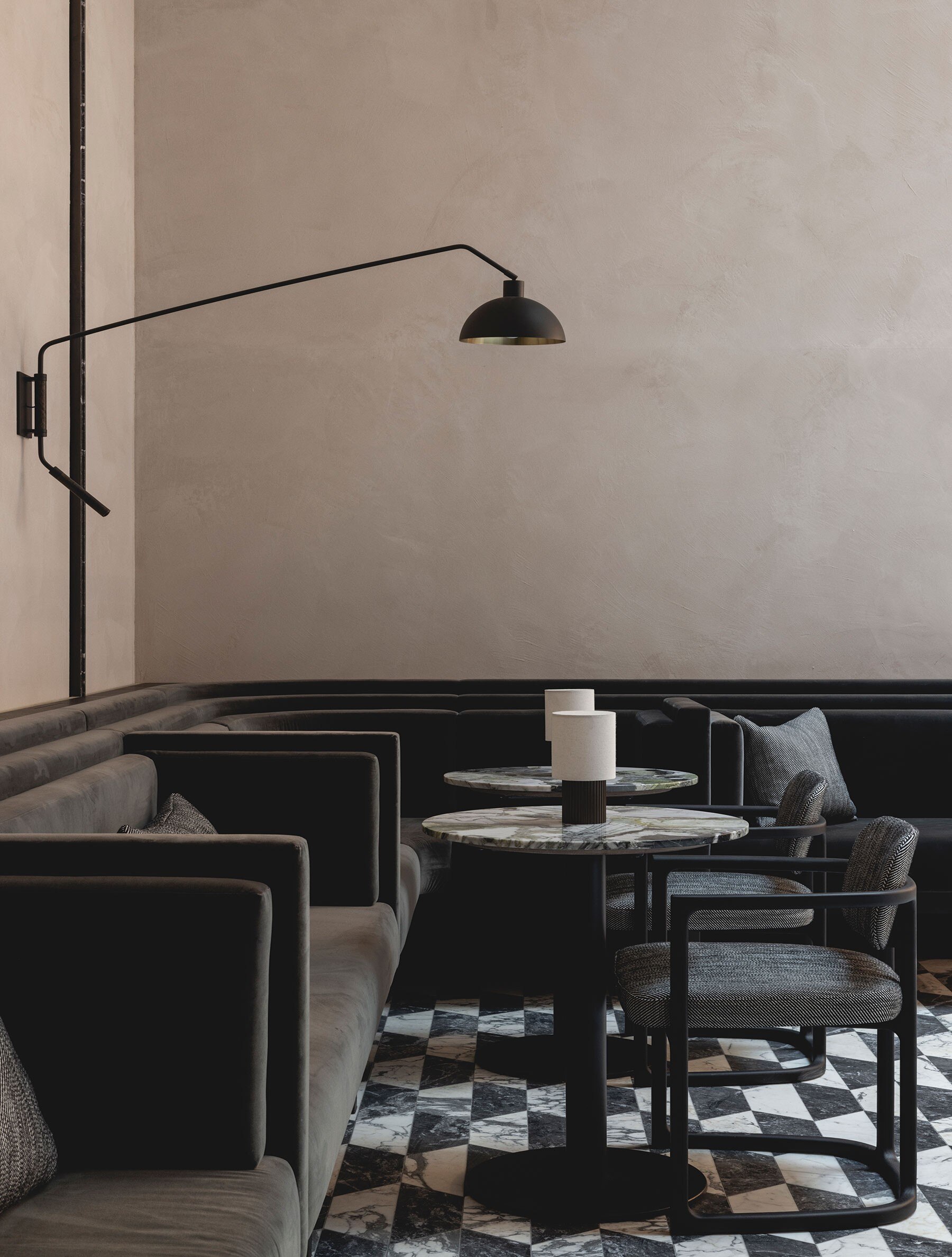 Arc Wall Lamp 52" shown in Maker Black, Black Walnut. Interiors by Venetian Interiors London. Photo by Billy Bolton.