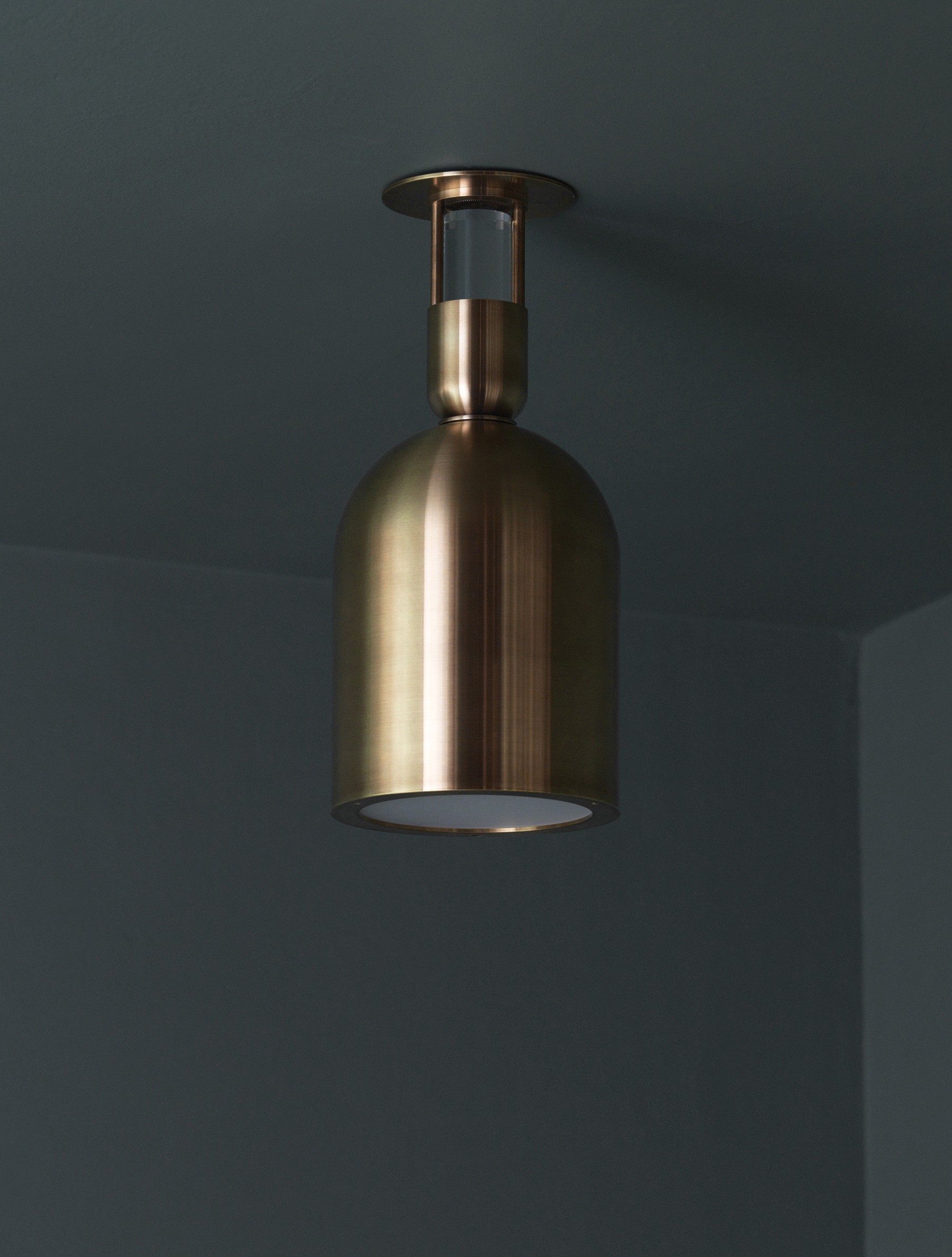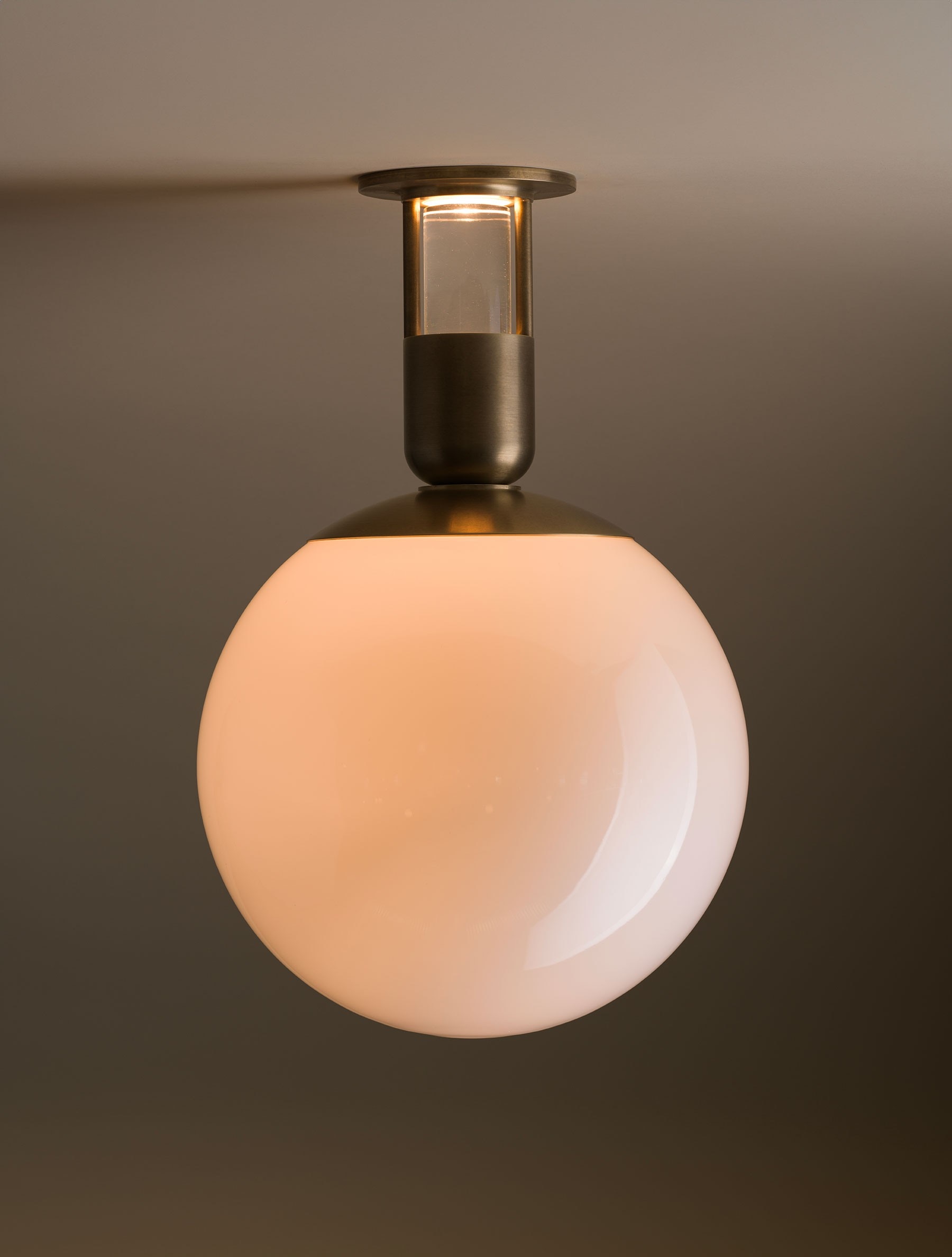 Aria is inspired by the functional light output of mid-century industrial workshop lighting. It features a flat glass sheet that diffuses light below it's domed shade, and a solid acrylic glass rod above to project light up into a space.