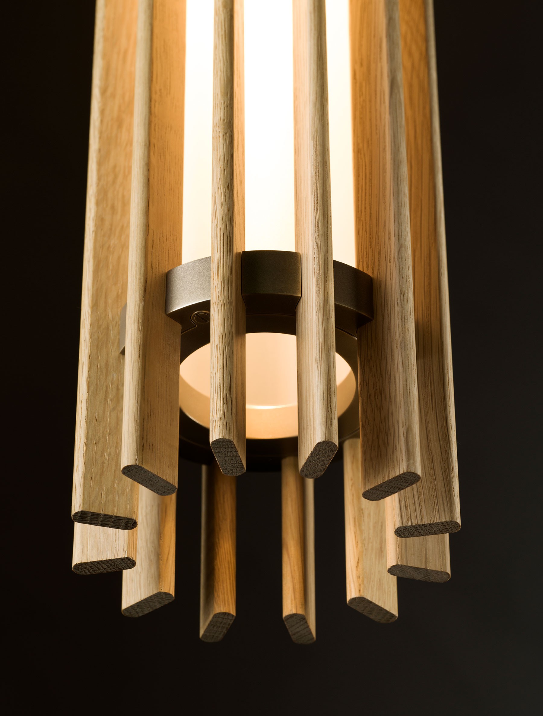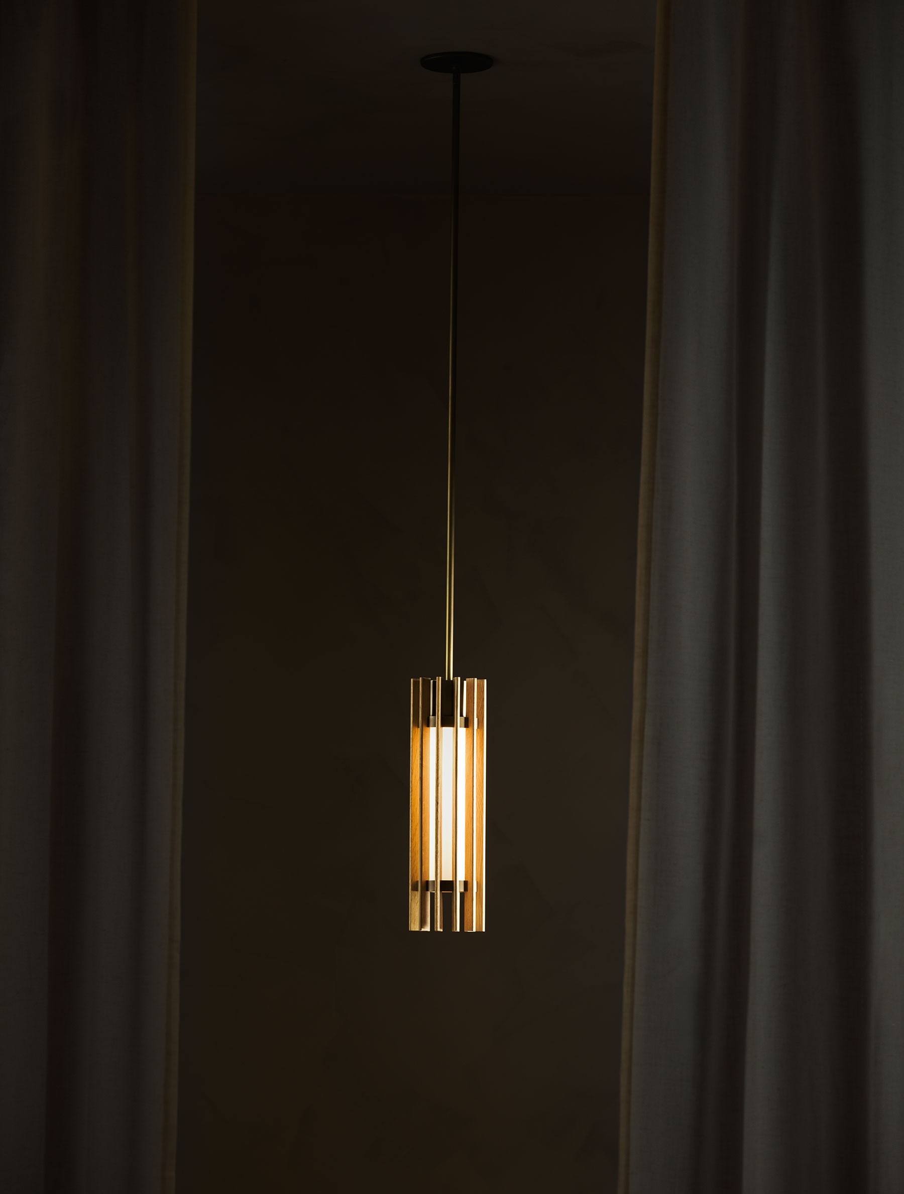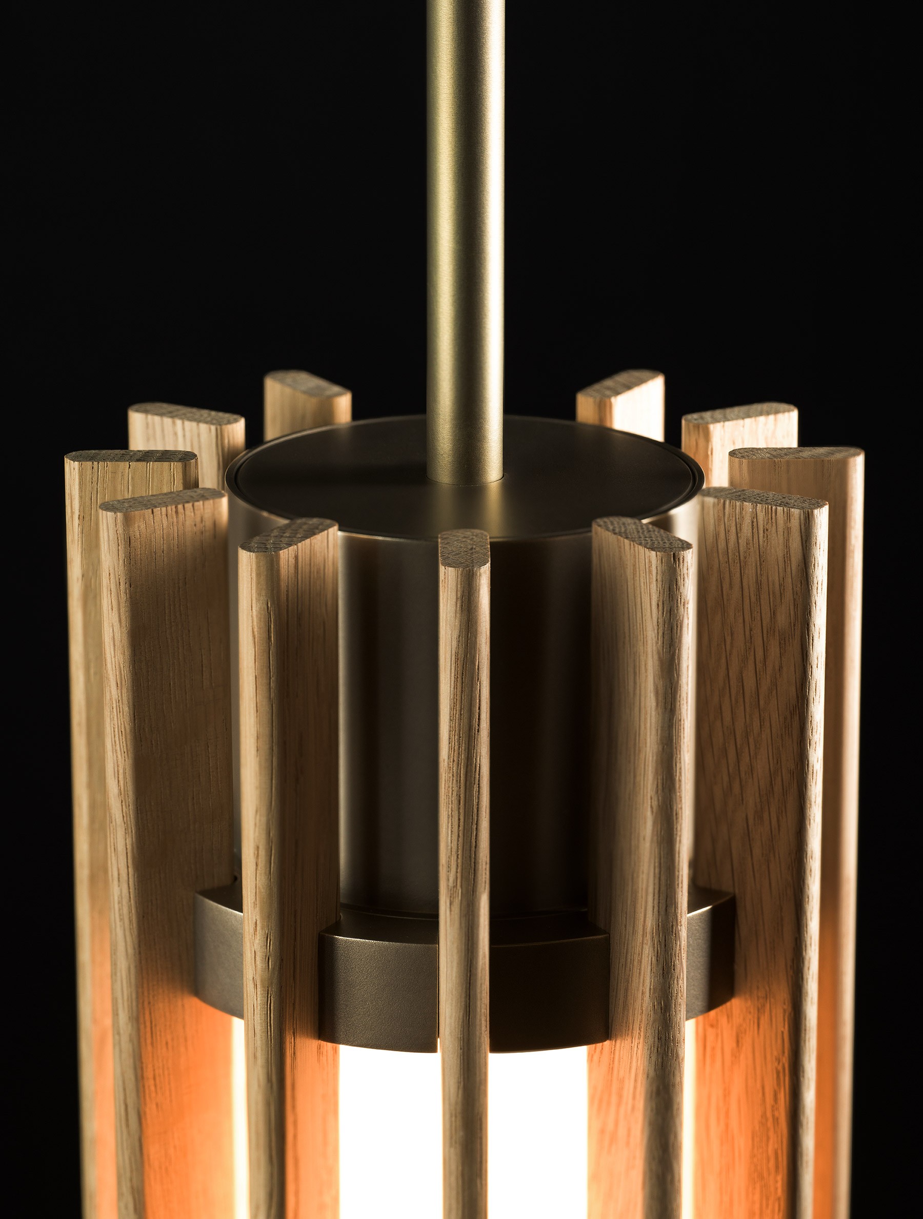 Beacon 17" Pendant detail shown in Heritage Brass, White Oak