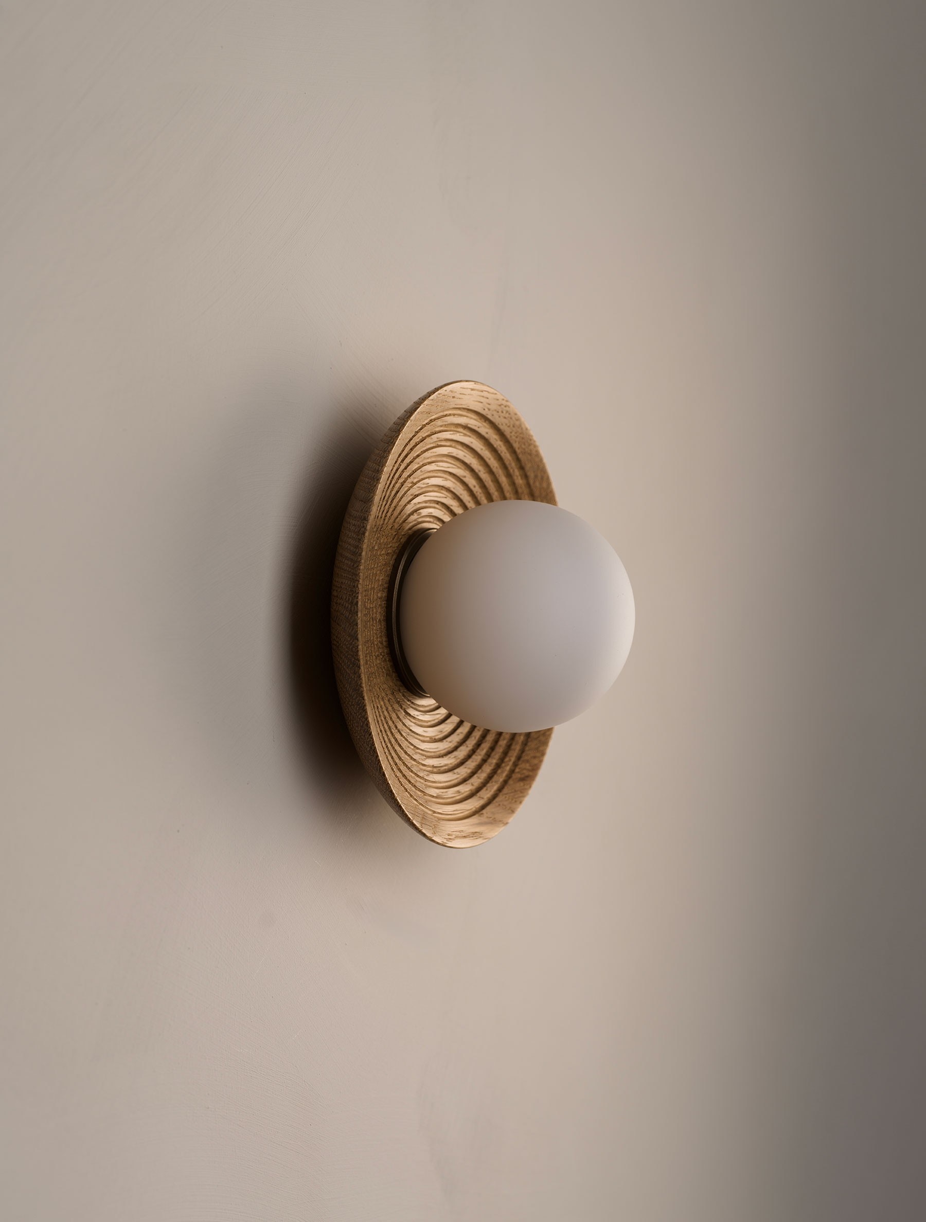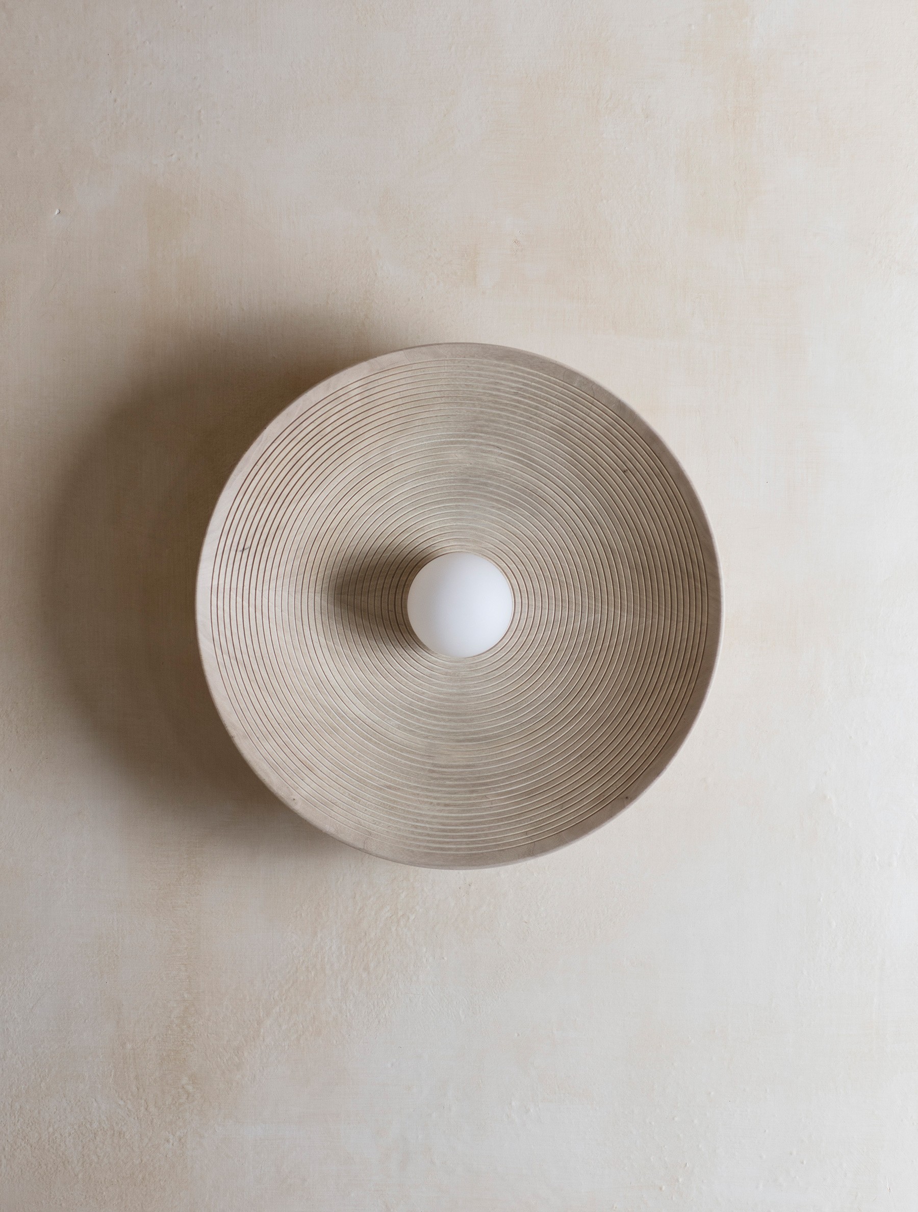 AVAILABLE IN TRIMLESS™Concentric lines ripple underneath a turned wood dome; reinforcing the pendant's form and beauty of it's material.